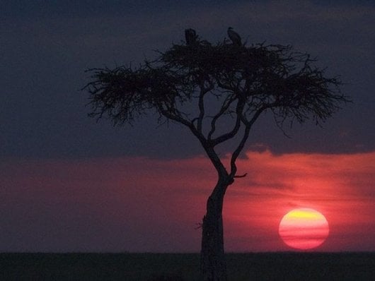 The Masai Mara is a national reserve in Kenya, particularly famous for its safari tours.  When the sun goes down over the horizon, it almost looks like the entire landscape is ablaze.